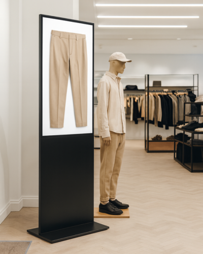 Diese 43" 4K Digital Signage Stele verwandelt visuelle Botschaften in beeindruckende Erlebnisse. Ob für Messen, Hotellobbys, Einzelhandel oder Markenpräsentationen – das gestochen scharfe 4K-Display zeigt lebendige Farben, brillante Details und maximale Bildklarheit, die Aufmerksamkeit garantiert.